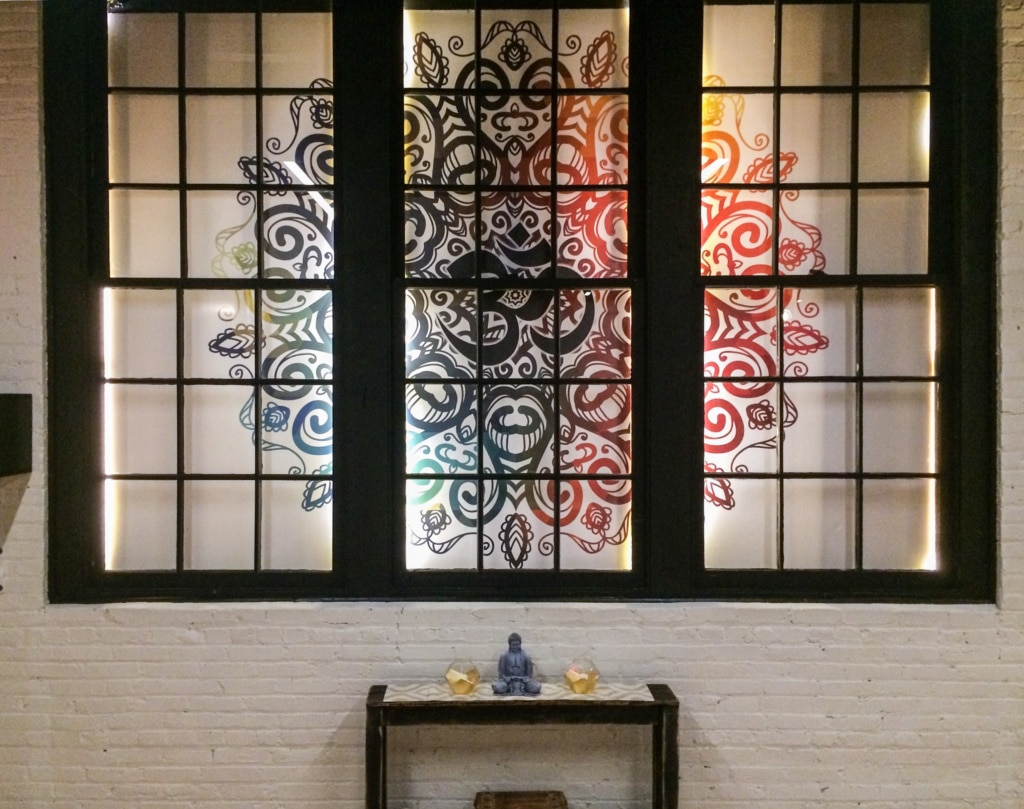 The custom-art window spaces at O-Yoga. (Photo by Kira Maddox)